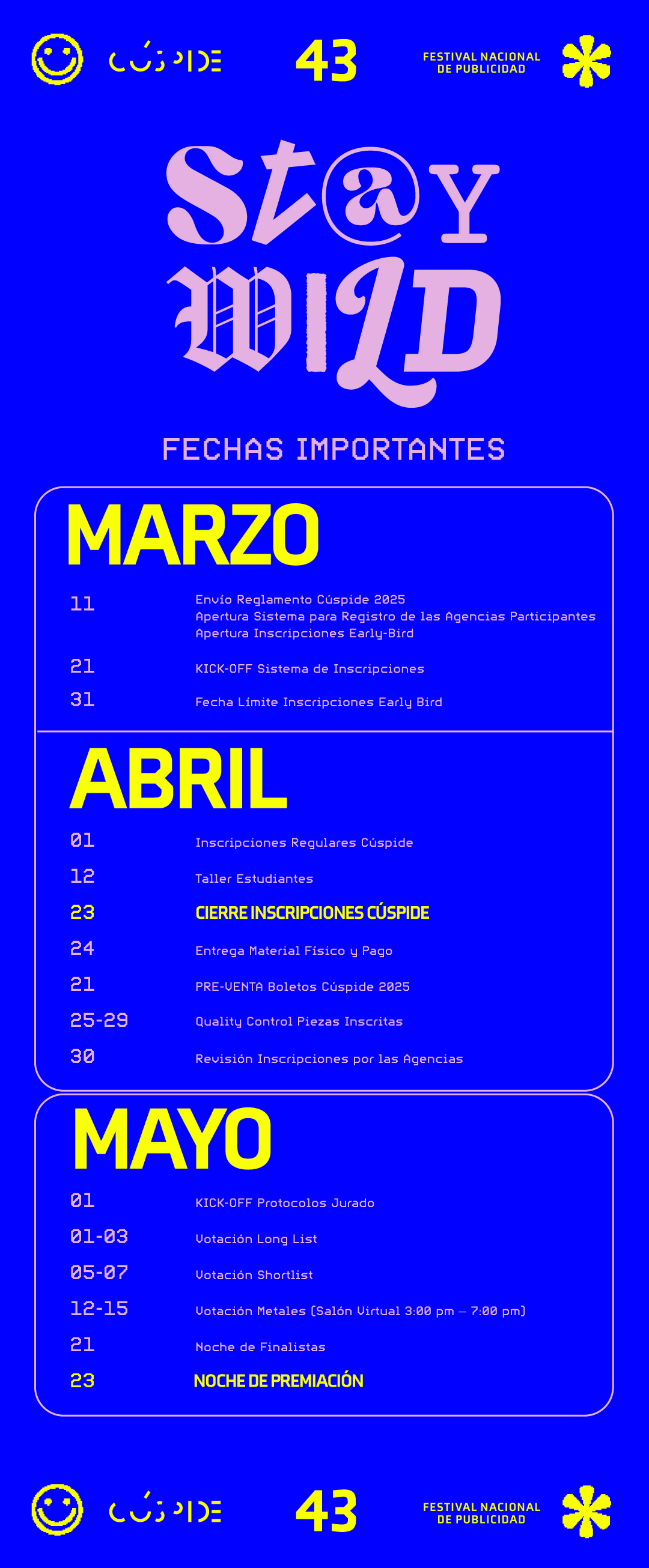La creatividad es el valor esencial en el Festival Nacional de Publicidad Cúspide. Ha de motivar a nuestro gremio creativo al reconocer de forma pública, aquellos proyectos que apelan la innovación, reaccionan al cambio y se ajustan a los tiempos con la mayor agilidad. Cúspide aspira a calibrar la competitividad de nuestra industria y ayuda a identificar las piezas que mejor representan al país en el circuito internacional de festivales.